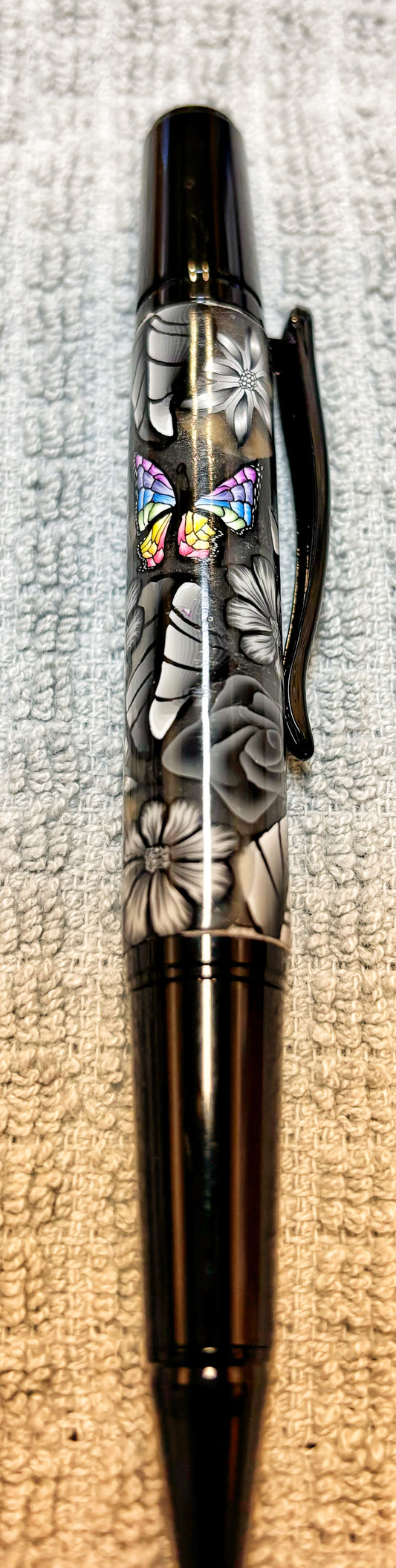 Butterflies and Flowers on a Twist Ballpoint Pen