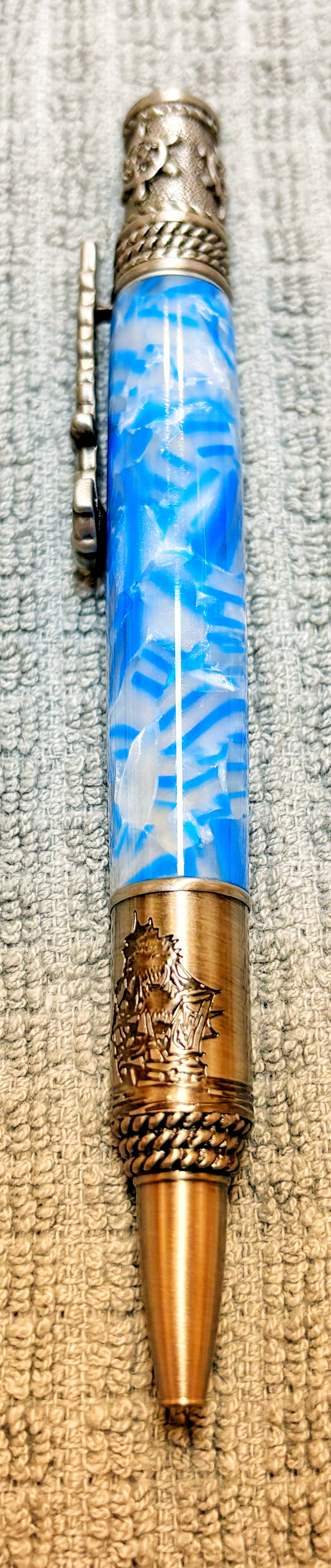 Alligator and Blue/Green Acrylic Bolt Action Ballpoint Pen