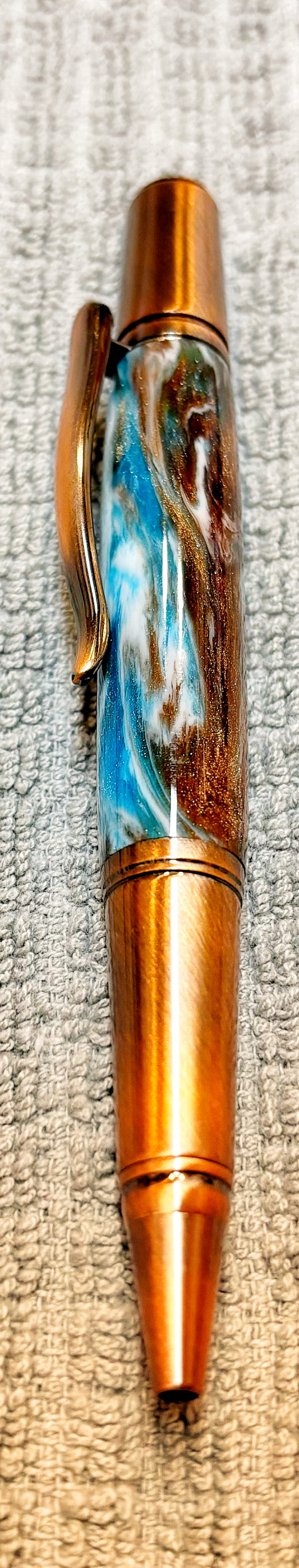 White, Blue and Copper DiamondCast Twist Ballpoint Pen