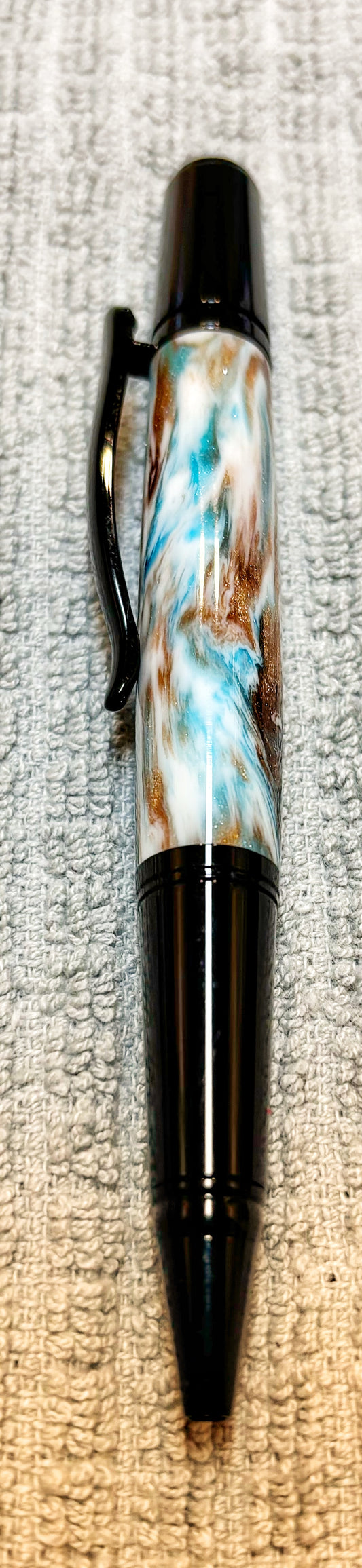 White, Blue and Copper DiamondCast Twist Ballpoint Pen